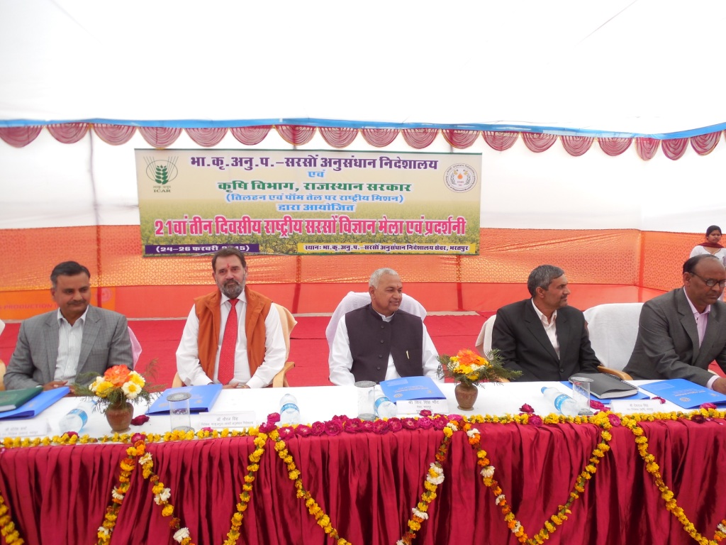 The 21th Sarson Vigyan Mela was organized at DRMR Bharatpur during Feb 24-26, 2015 wherein a large number of farmers from Rajasthan, MP and UP states participated. There were several stalls dealing on various aspects of agriculture including technologies and implements/products. The Sarson Vigyan Mela was inaugurated by Chief guest Sh Shiv Singh Bhot, Bharatpur.. Date:2015-02-24 to 2015-02-26  |