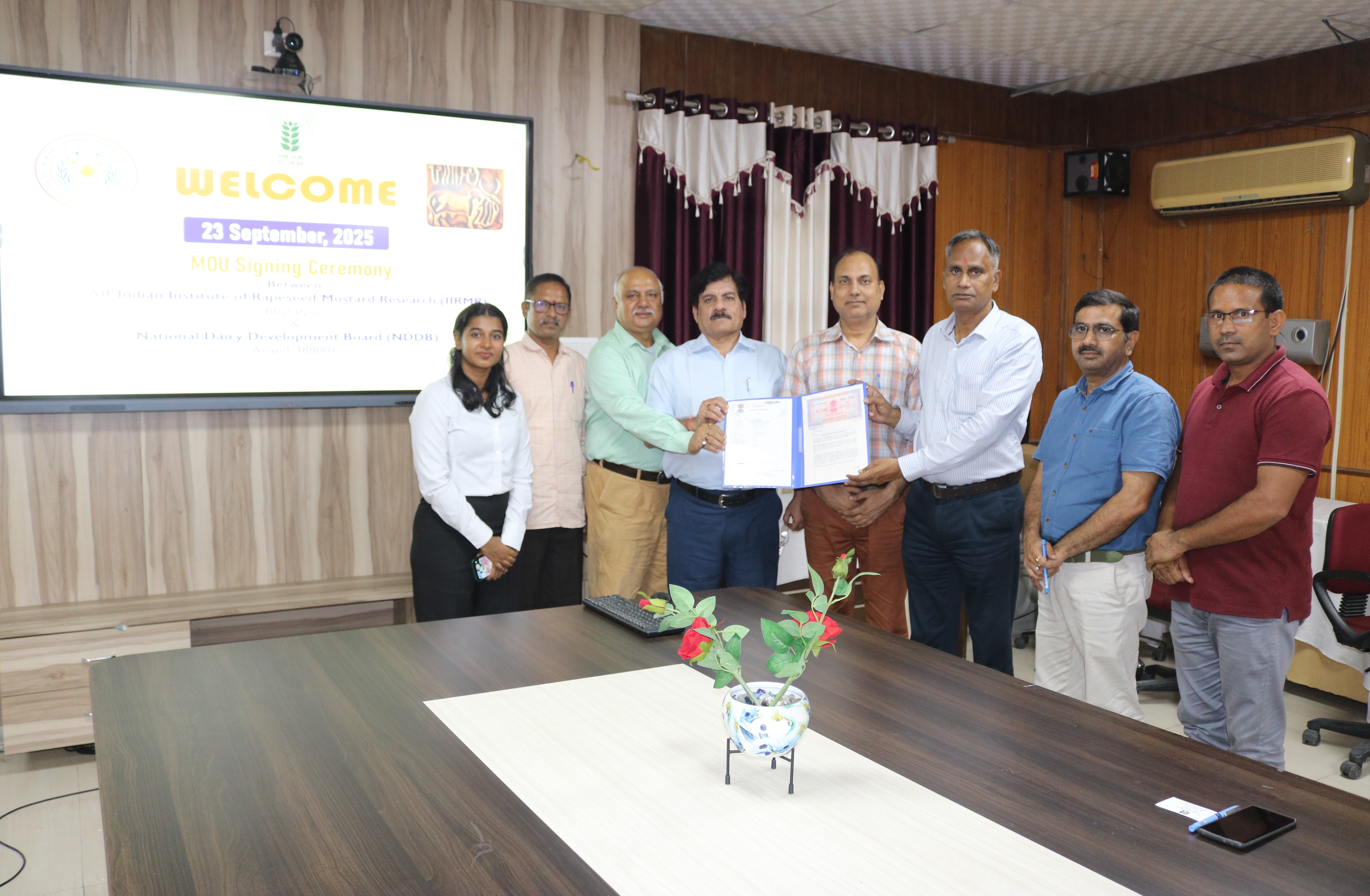ICAR–Indian Institute of Rapeseed-Mustard Research, Bharatpur, signed a Memorandum of Understanding with the National Dairy Development Board, Anand, Gujarat, to foster collaboration in agriculture and allied sectors. The MoU was signed today at ICAR-IIRMR, Bharatpur.